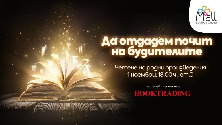 Публично четене1 ноември, 18:00, ет. 0 С книжарница Booktrading имаме удоволствието да Ви поканим в Mall Велико Търново в…