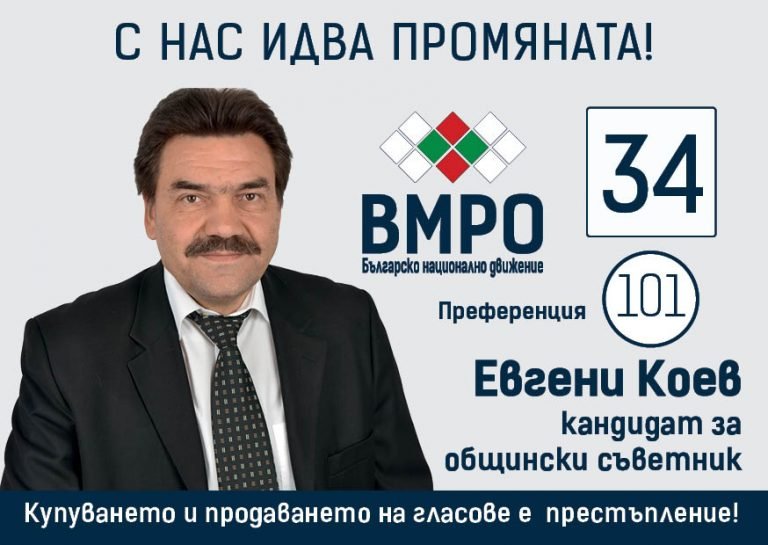 Водачът на листата на ВМРО Евгени Коев: ЗАЩО ВМРО? ЗА ДА ИМА ПРОМЯНА КЪМ ПО-ДОБРО!