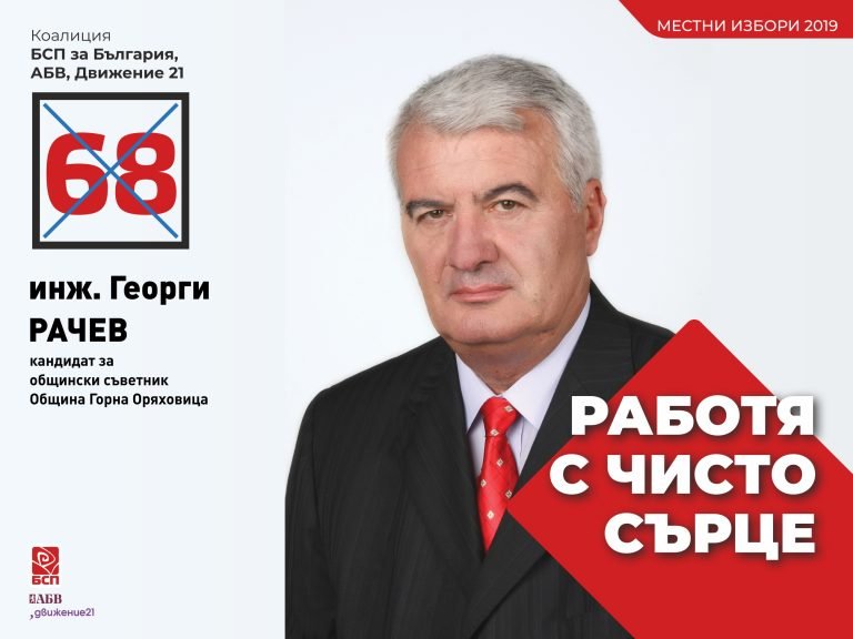 Инж. Георги Рачев е кандидат за общински съветник в Горна Оряховица от коалиция „БСП за България“ – АБВ – „Движение…