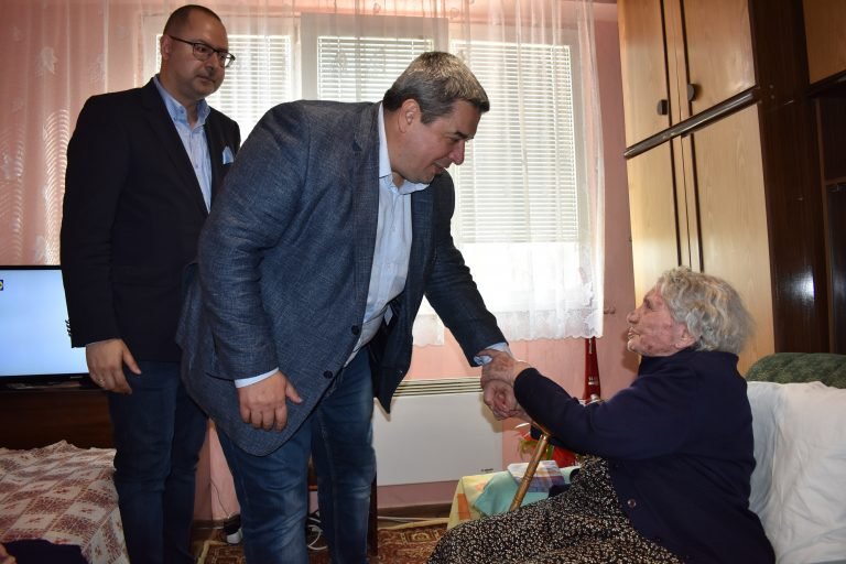 Инж. Добромир Добрев се поклони и целуна ръка на 100-годишната Златка Цветанска на рождения й ден