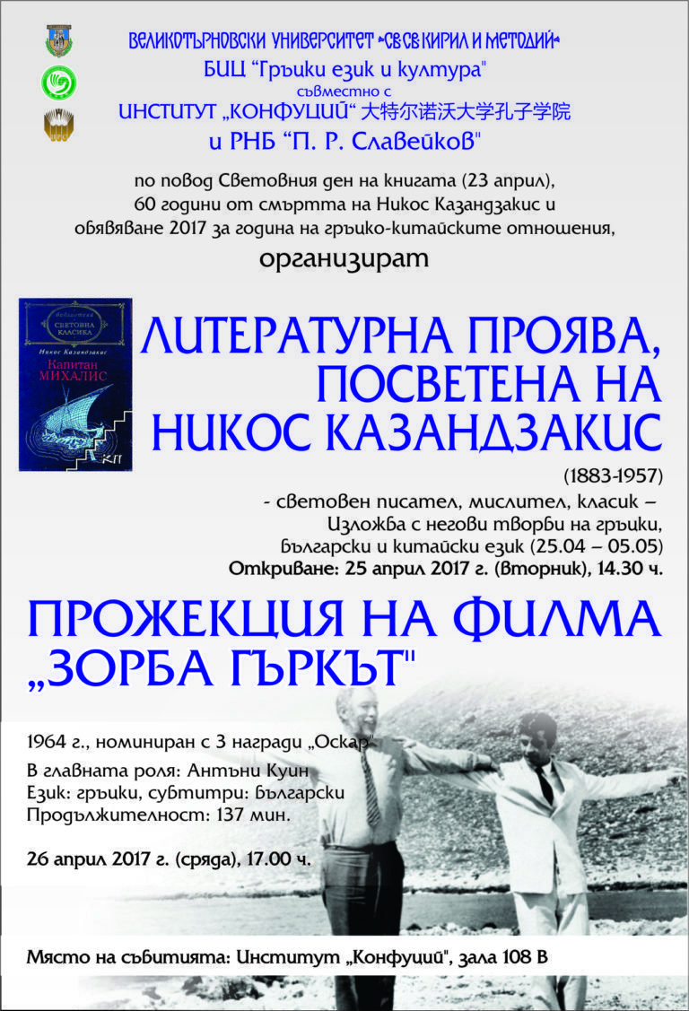 Литературна проява, посветена на Никос Казандзакис, във ВТУ