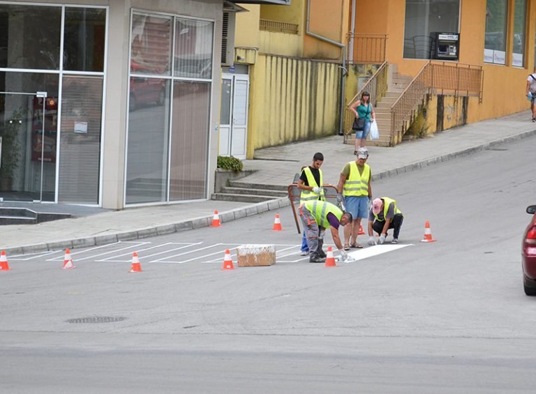 Освежават пътната маркировка по великотърновските улици след Великден