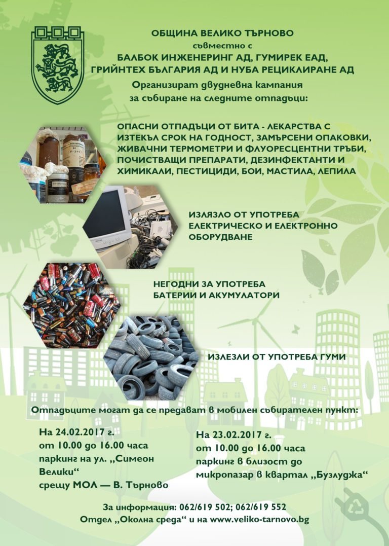 Предстои двудневна кампания за събиране на опасни битови отпадъци