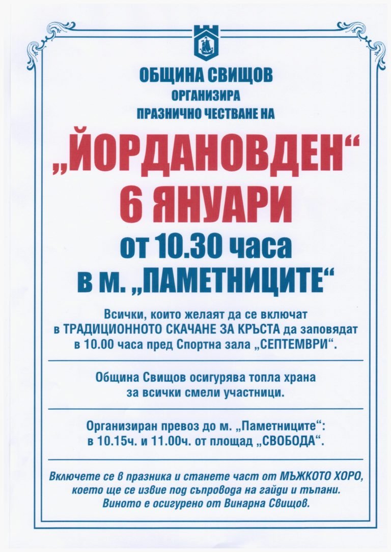 Община Свищов организира празнично честване на Йордановден