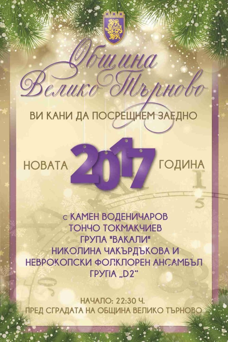 Празничната програма по случай посрещането на Новата 2017 г. ще започне в 22:30 ч. пред сградата на Общината във Велико…