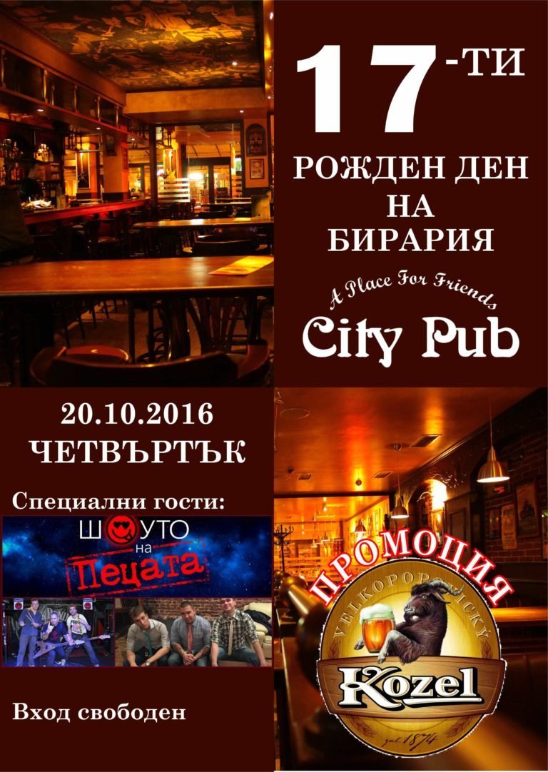 17-ти рожден ден на Бирария Сити Пъб 20.10. /четвъртък/Начало : 20.00 ч Специални гости : ШОУТО НА ПЕЦАТА ВХОД…