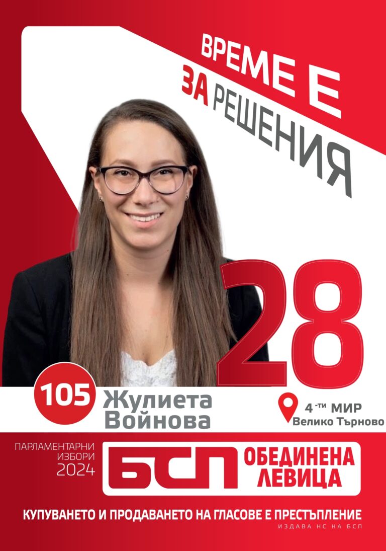 Съчетание между опит и младост! Това е листата на „БСП- Обединена левица“ в област Велико Търново. Запознайте се с Жулиета…