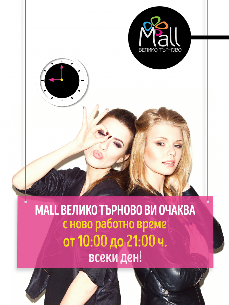 Уважаеми клиенти, за ваше удобство Mall Велико Търново вече работи с ново работно време – от 10:00 до 21:00 ч.…