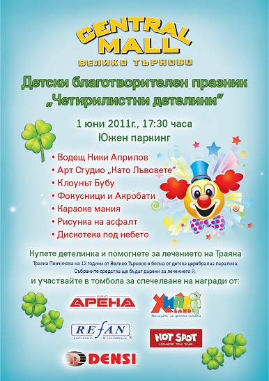 Сентрал Мол организира детски благотворителен празник „Четирилистни детелини” по повод Международния ден на детето на 1 юни от 17:30 часа…