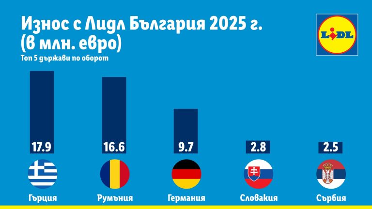 Рекордните 66,4 млн. евро достигна износът от български компании с Lidl за 2025 г.