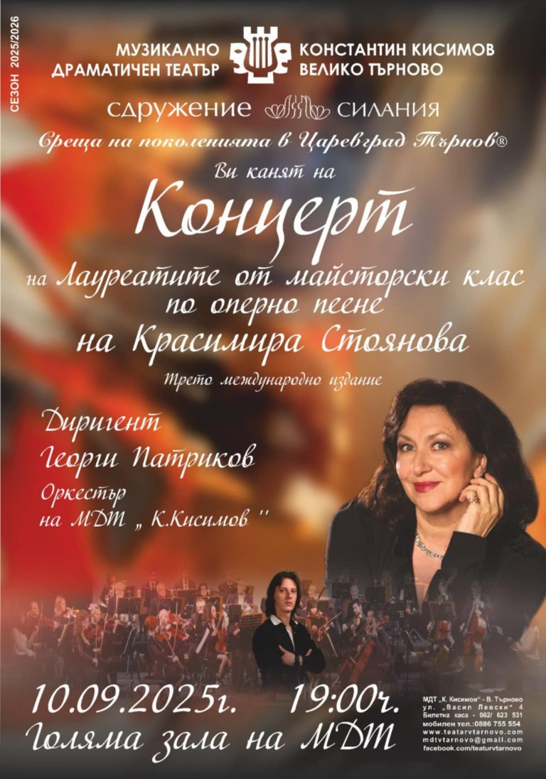 С концерт с оркестъра на театър ще завърши майсторският клас на оперната прима Красимира Стоянова във В. Търново