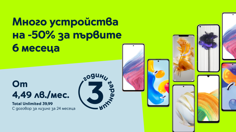 През февруари Yettel предлага смартфони с 50% отстъпка на лизинга за 6 месеца и 3 години безплатна гаранция