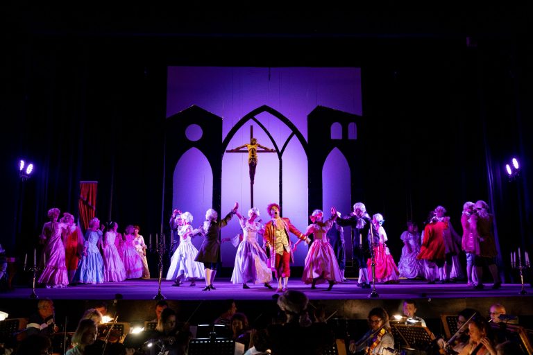 Четириметров кръст – символ на гениалната музика на Моцарт, в която се разкрива Бог, ще издигне на откритата сцена на…