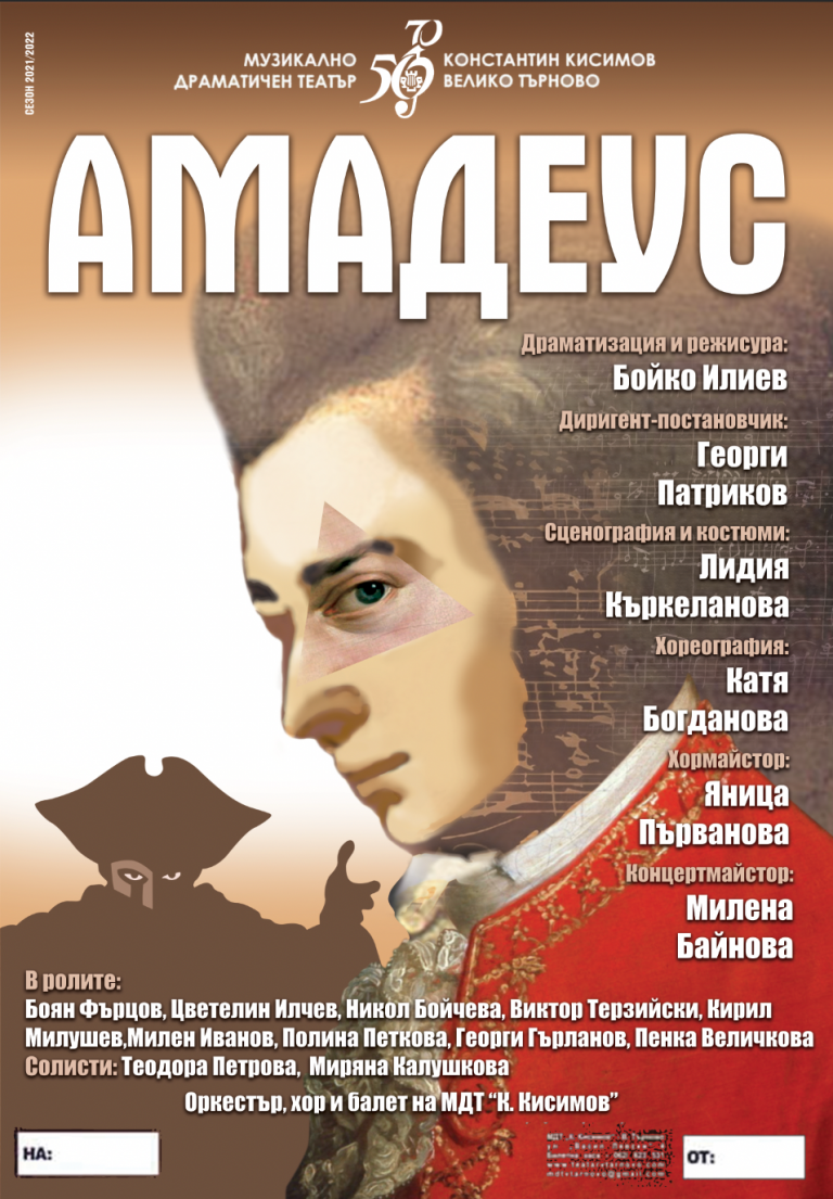 Театрално-музикалният спектакъл „Амадеус“ е новото творческо предизвикателство, с което се е заел екипът на Музикално-драматичния театър „Константин Кисимов“ във Велико…