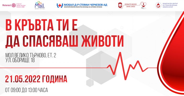 Национална кръводарителска кампания под мотото “В кръвта ти е да спасяваш животи” ще се проведе на 21.05.2022 г. в Mall…