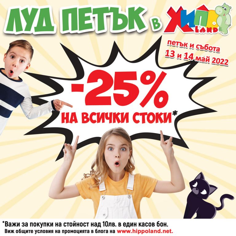 25% отстъпка на всичкo – играчки, бебешки стоки, дрешки, книжки! Промоцията е валидна за покупки на стойност над 10лв. с …