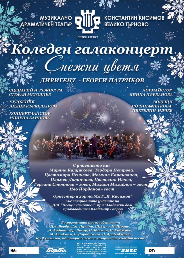 Великотърновският театър ще представи в три български града своя коледен галаконцерт. С пищния музикален спектакъл под надслов „Снежни цветя“ артистите…