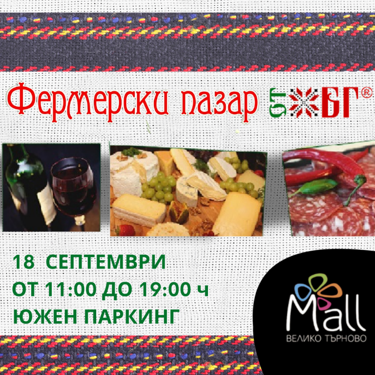 Фермерски пазар „ОТ БГ“ ви очаква на 18.09. на южен паркинг в Mall Велико Търново. Изберете между широка селекция от…