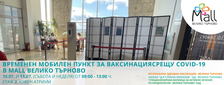Временен ваксинационен пункт в Mall Велико Търново на 10.07. и 11.07.