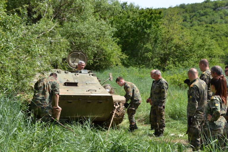 Курсанти от НВУ „Васил Левски“ извлякоха затънало в блато 11-тонно МТЛБ