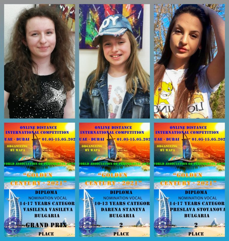 14-годишната Василена Василева прибави към своята богата колекция от награди още една – Гран при от международния онлайн конкурс „Golden…