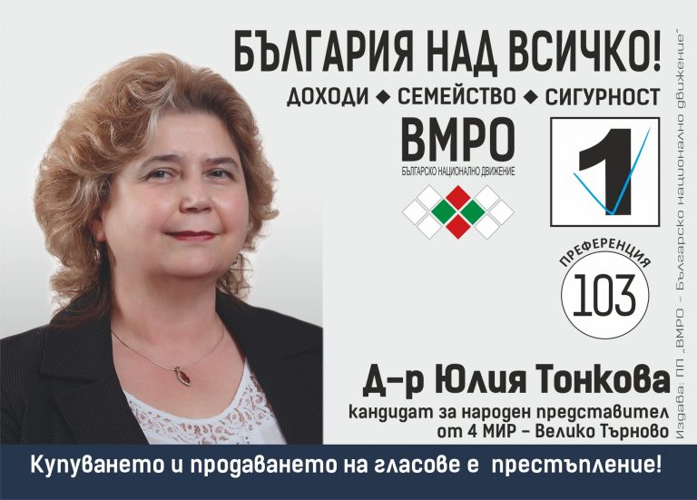 Д-р Юлия Тонкова е кандидат за народен представител от листата на ВМРО в 4 МИР. Има висше медицинско образование, дипломиран…