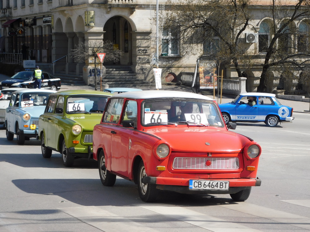 Стотици хора се събраха още в 10 ч. на входа на парк “Марно поле”, където бе регистрацията на трабантите, и с интерес разглеждаха возилата, а собствениците обменяха идеи и съвети. Час по-късно ретро возилата вдигнаха пушилка и в колона се изнесоха пред сградата на общината, където се подредиха в две редици за изложението.