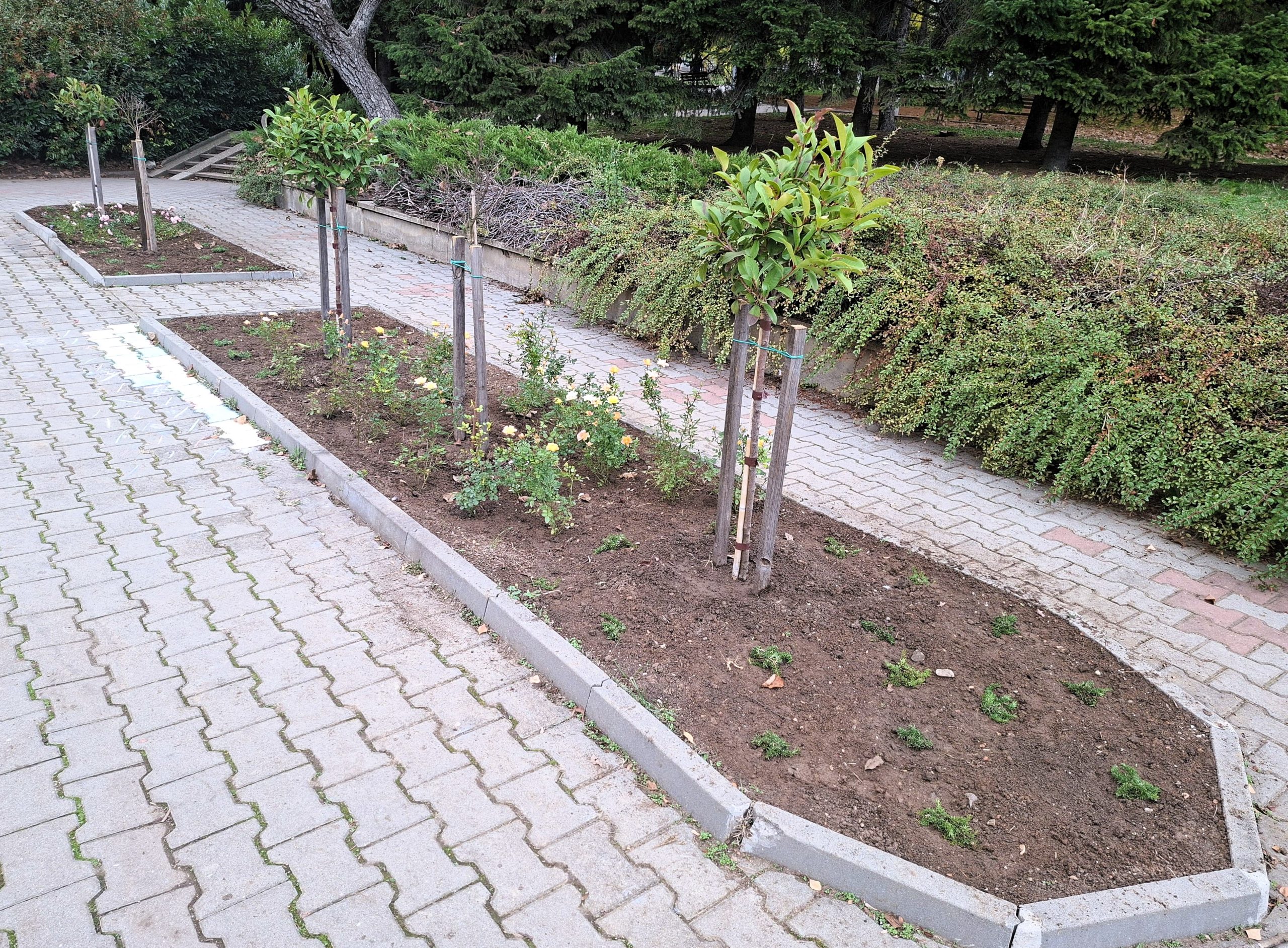 Дърветата, храстите и многогодишните цветя са посадени в кв. „Бузлуджа“, кв. „Чолаковиц“, „кв. „Света гора“, край ДКС „Васил Левски“, парк „Колю Фичето“, парк ‚Дружба“, парк „Марно поле“, в градинката пред паметника на Емилиян Станев в района на Самоводската чаршия. Нови дървета растат също покрай ул. „Елин Пелин“, ул. „Любен Каравелов“, бул. „Габровски“ (цирковата площадка), улица „Плиска“, ул. „Христо Ботев“ и др.
