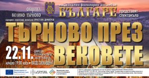 Национален фолклорен ансамбъл „Българе“ и Община Велико Търново представят историческия танцов спектакъл „Търново през вековете“. Историята на Старата столица ще бъде пресъздадена със силата и емоцията на фолклора на 22 ноември в Двореца на културата и спорта „Васил Левски“.