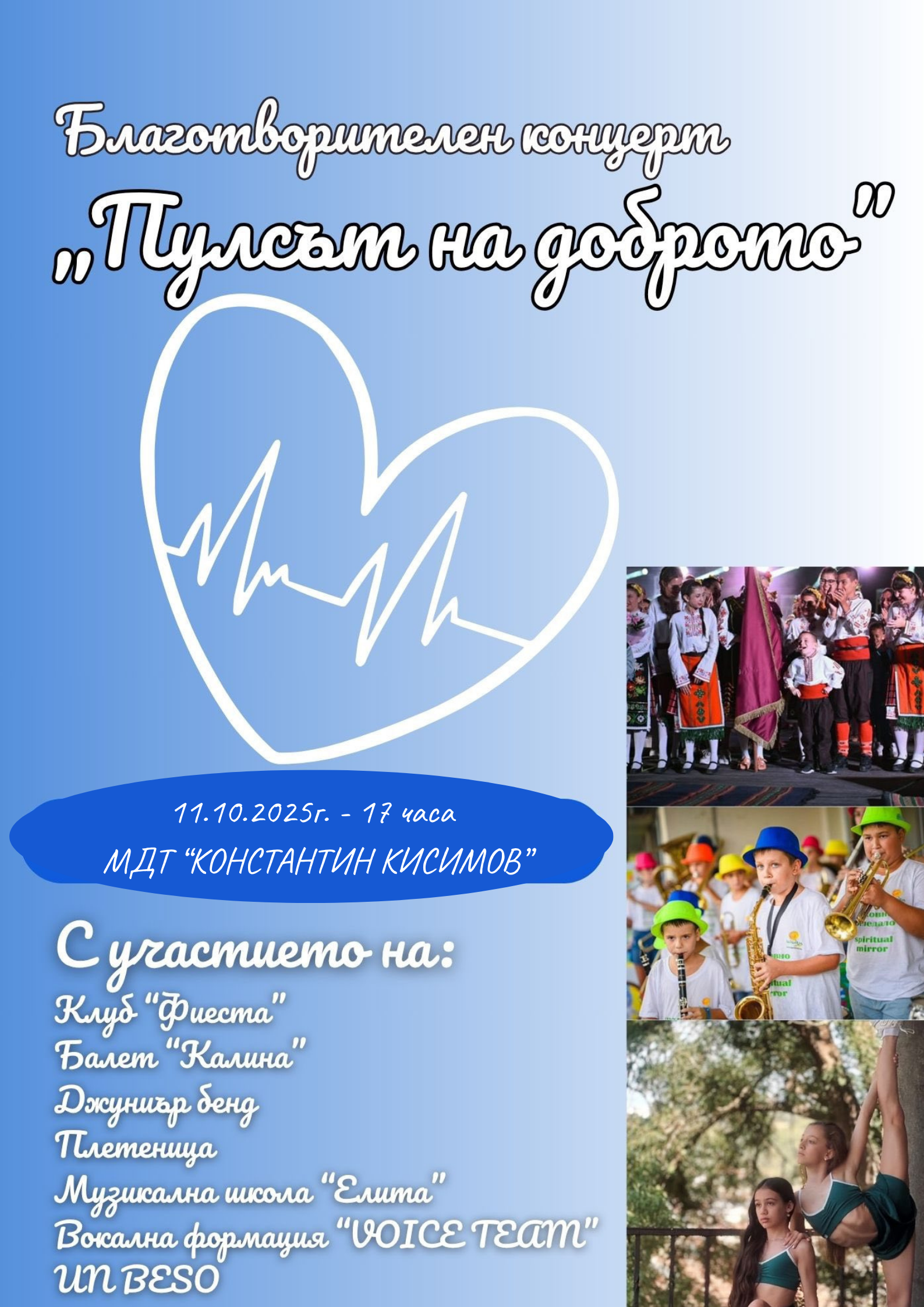 Музикалното събитие ще се проведе на 11 октомври – събота, от 17:00ч. в залата на МДТ „Константин Кисимов“. Входът е свободен, а всеки желаещ ще може да направи дарение в подготвените дарителски кутии.