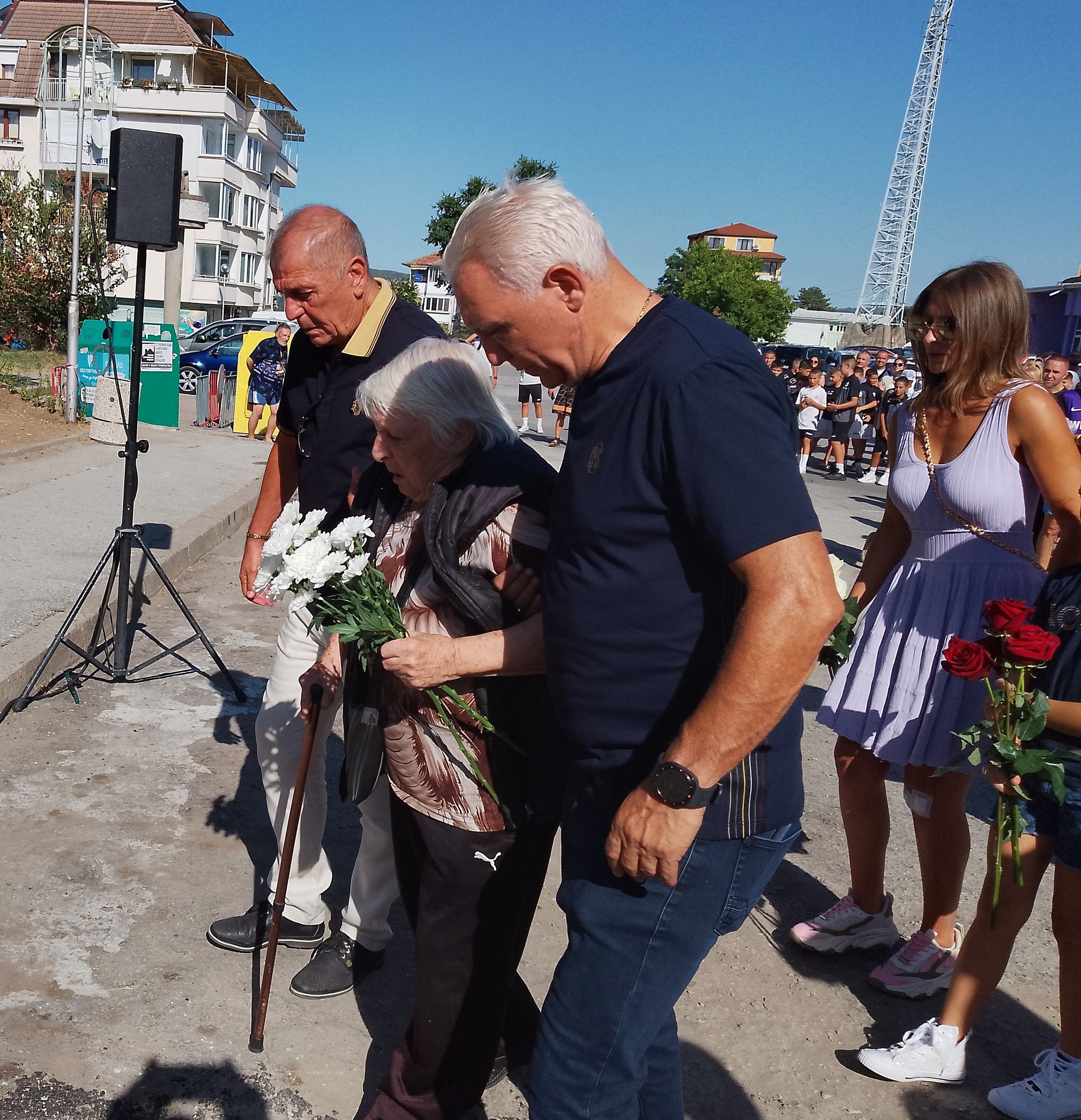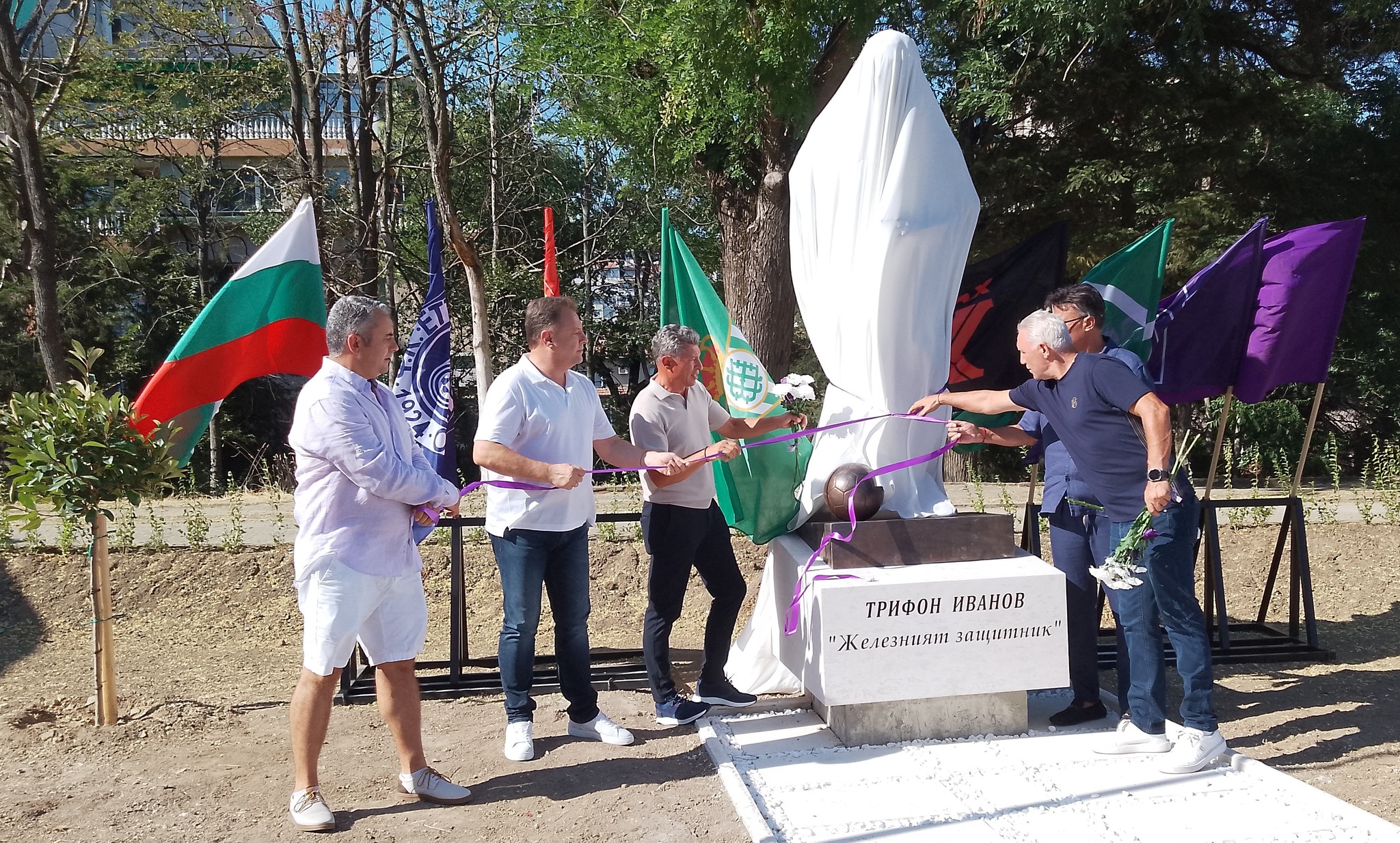 Семейството на Трифон Иванов бе първото, което постави цветя на паметника на “железния” защитник. Майка му – леля Маринка, подкрепяна от Стоичков и Балъков, дъщерите му Галя и Марина, внуците му, не скриваха огромното си вълнение и сълзи.