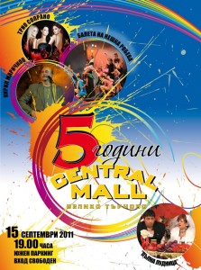 Пет години от откриването на Сентрал Мол ще бъде отбелязано на 15 септември 2011 г. от 19.00 часа с незабравимо шоу с едни от най-обичаните български актьори и изпълнители Мария Сапунджиева и Герасим Георгиев – Геро, балетът на Нешка Робева, Кирил Маричков и Трио „Сопрано”.