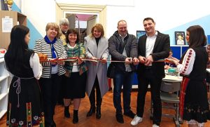 Друг кабинет разполага с два режещи плотера, подходящи за различни дебелини картон и PVC фолио. Ученичката Камелия Колева от XII “б“ клас демонстрира изрязване на декоративни форми от фолио. Тя подготви файла чрез векторната програма Inkscape, като използва придобитите знания от предмет от специфичната професионална подготовка – Учебна практика по компютърна графика. След изрязването показа как формите се прехвърлят с помощта на транспортно фолио и се залепят на подготвена повърхност. Процесът по подготовката и разработването на проектите беше представен чрез мултимедиен файл, като видеото е направено от Владимир Добрев, ученик от Х “в“ клас. Ръководител в този кабинет бе госпожа Гергана Иванова.