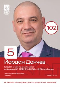 В Момента Йордан Дончев е заместник-председател на Общинския съвет на БСП в Горна Оряховица. С е с номер 5 в листата на „БСП- Обединена левица“ и лична преференция 102.
