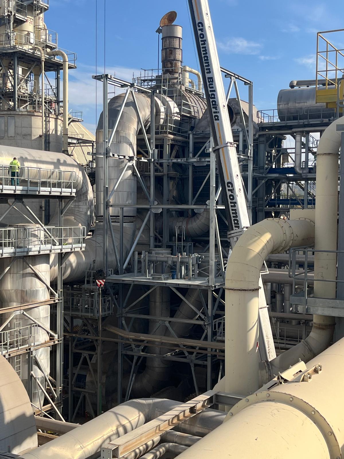 1. Монтаж на два циклона тип „Хуриклони“ – за по-добро отделяне на твърдите частици преди сушилнята и мокрия електрофилтър при производството на МДФ.