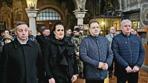 Празничният ден започна със Света литургия, отслужена от великотърновския митрополит Григорий, на която присъстваха кметът Панов, областният управител, председателят на местния парламент, представители на институциите и граждани. След богослужението отец Матей поведе литийно шествие до площад „Цар Асен I“ и освети знамето на НВУ „Васил Левски“.