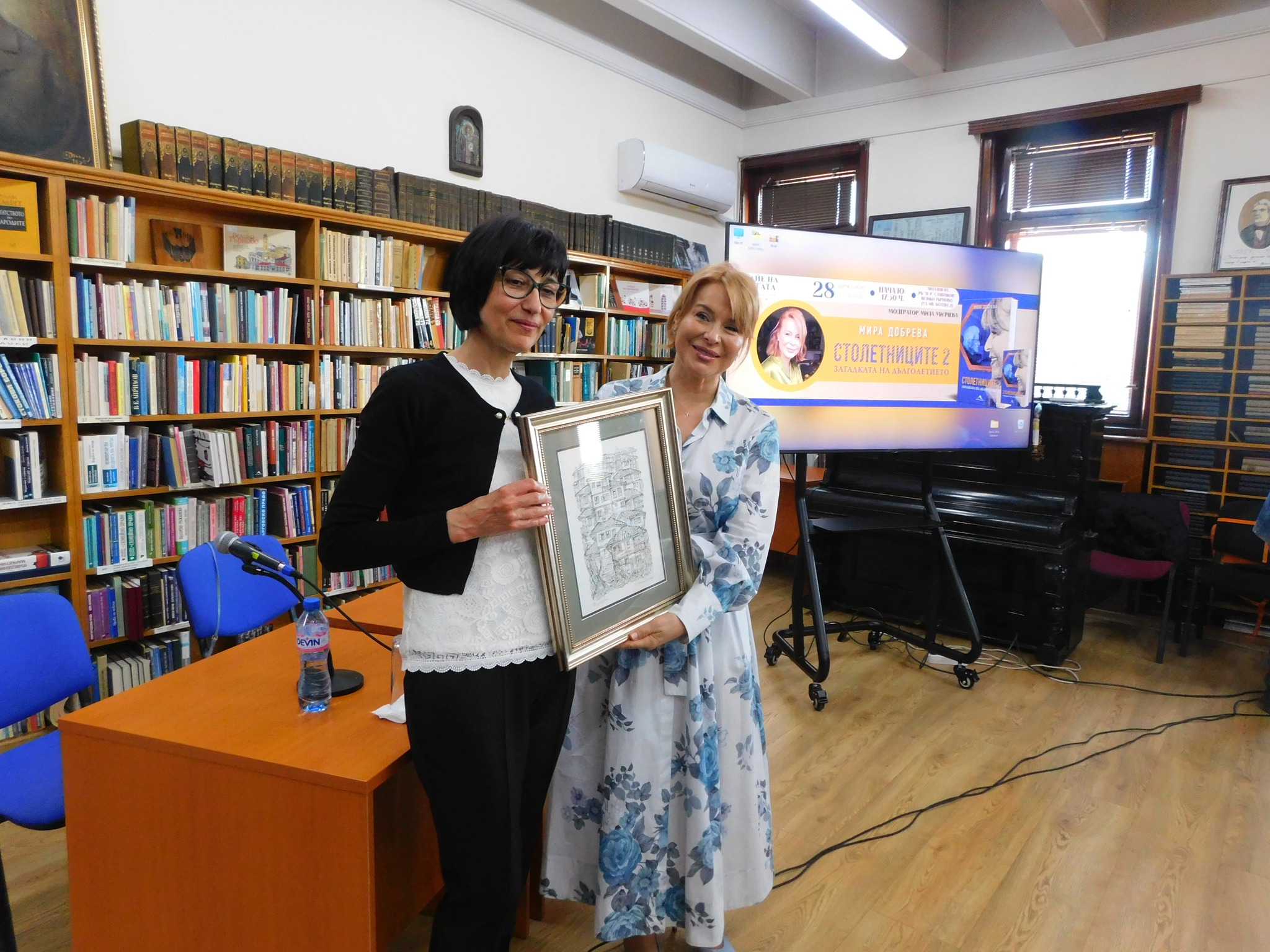 Популярната журналистка и авторка Мира Добрева представи в РНБ „Петко Р. Славейков“ новата си книга „Столетниците 2. Загадката на дълголетието“. Естествено – пред препълнена зала, още по-разбираемо – в среща, богата на споделени емоции…