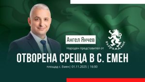 Народният представител от „Възраждане“ Ангел Янчев ще се срещне с жители на село Емен на 1 ноември (събота). Срещата се организира на площада в селото от 16.00 часа.