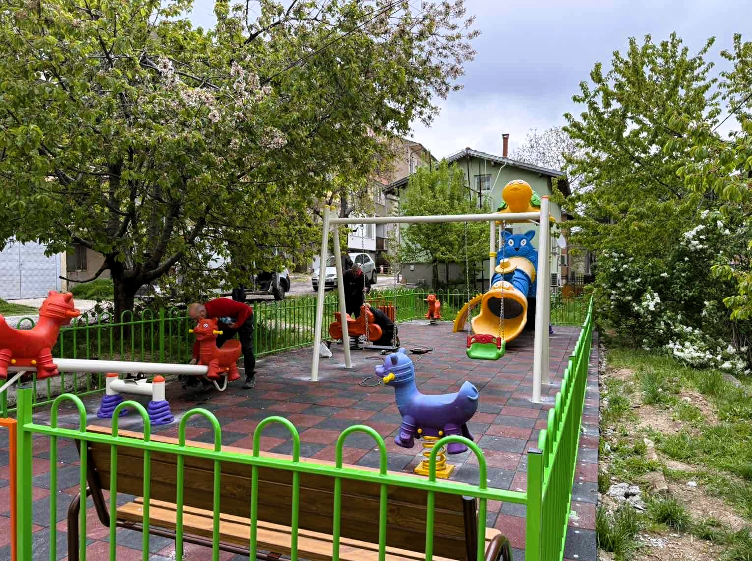 Дейностите са пред завършване – уредите и съоръженията за игра са монтирани, положена е безопасна за малчуганите настилка, поставена е и оградата. Предстои цялостното почистване.