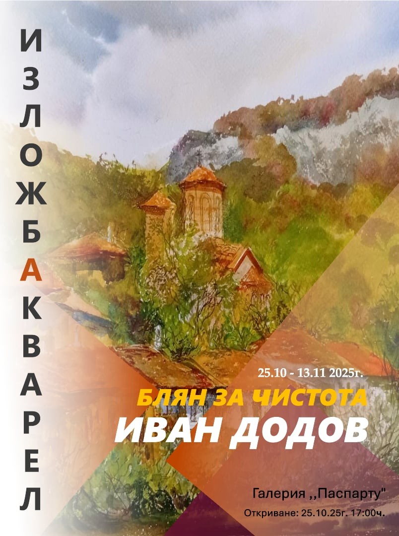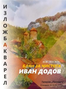 Откриване и освещаването на галерия „Паспарту“ са в събота, 25 октомври, от 17:00 ч. Изложбата на Иван Додов „Блян за чистота“ ще е експонирана от утре до 13 ноември, а входът е свободен.