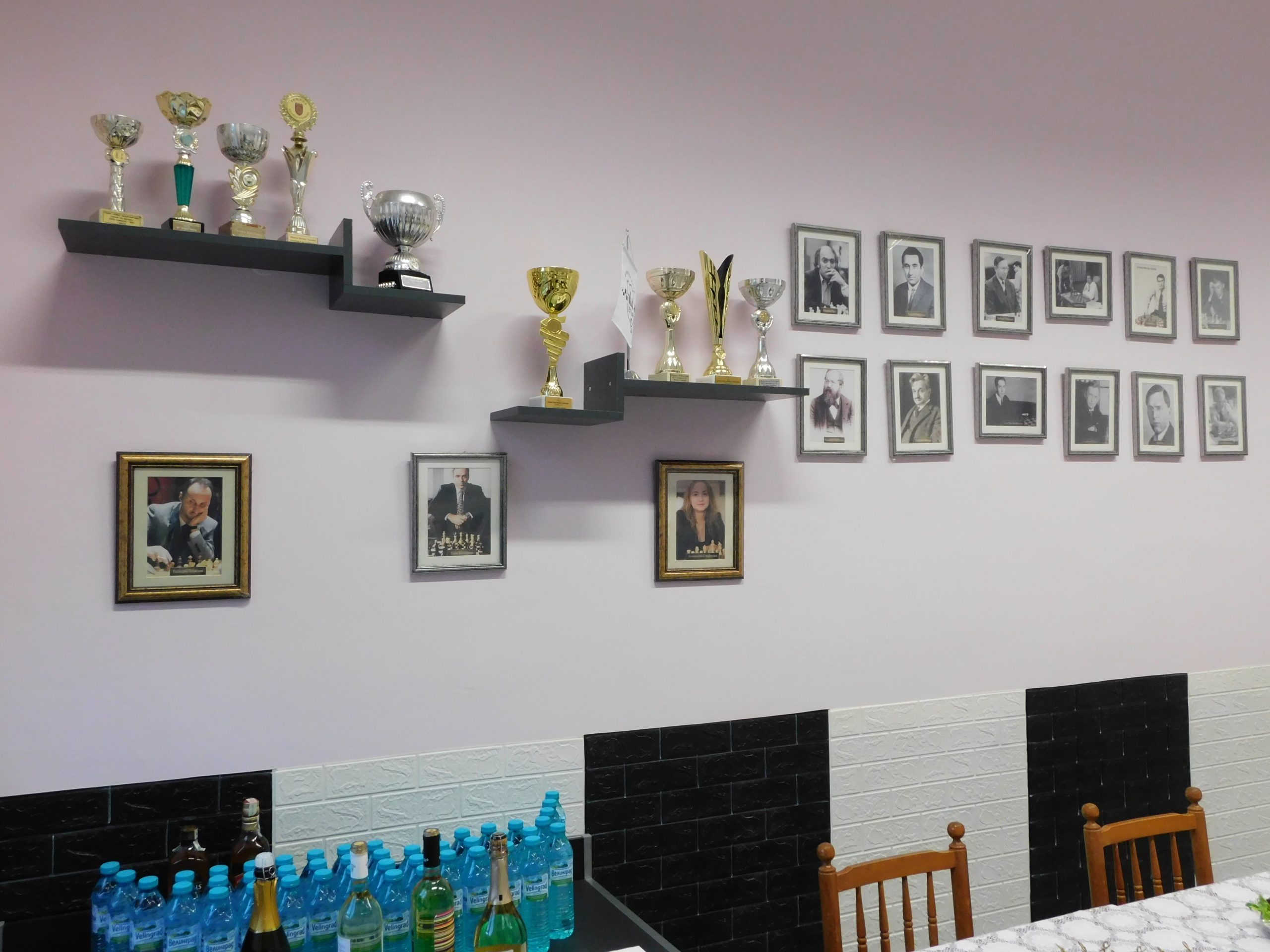 Изложени са част от трофеите на клуба – купите от държавните отборни първенства, в които е шампион, друга част е дарение от гросмайстор Мариян Петров на спечелените от него отличия по целия свят. По стените има снимки на всички 13 световни шампиони плюс Веселин Топалов и Антоанета Стефанова.