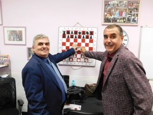 Председателят на ШК „Етър“ Николай Йорданов и Петко Павлов символично направиха първия ход на стилна шахматна дъска, поставена на една от стените.