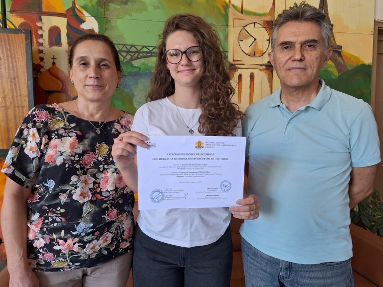 Дванадесетокласничката Микаела Михайлова от ПЕГ „Проф. д-р Асен Златаров“ успешно защити сертификат за билингвално франкофонско обучение по история и цивилизации.…