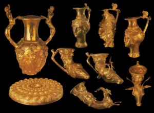 Великотърновци и гостите на града ще могат да видят всички девет съда от Панагюрското съкровище, които служат за пиене на вино и угощения. Те са с общо тегло 6 кг и 164 грама. Луксозният трапезен сервиз е изработен в малоазийския град Лампсак в началото на III век пр.Хр. от 23-каратово злато. Имането е открито през декември 1949 г. от братя Дейкови по време на изкопни работи.