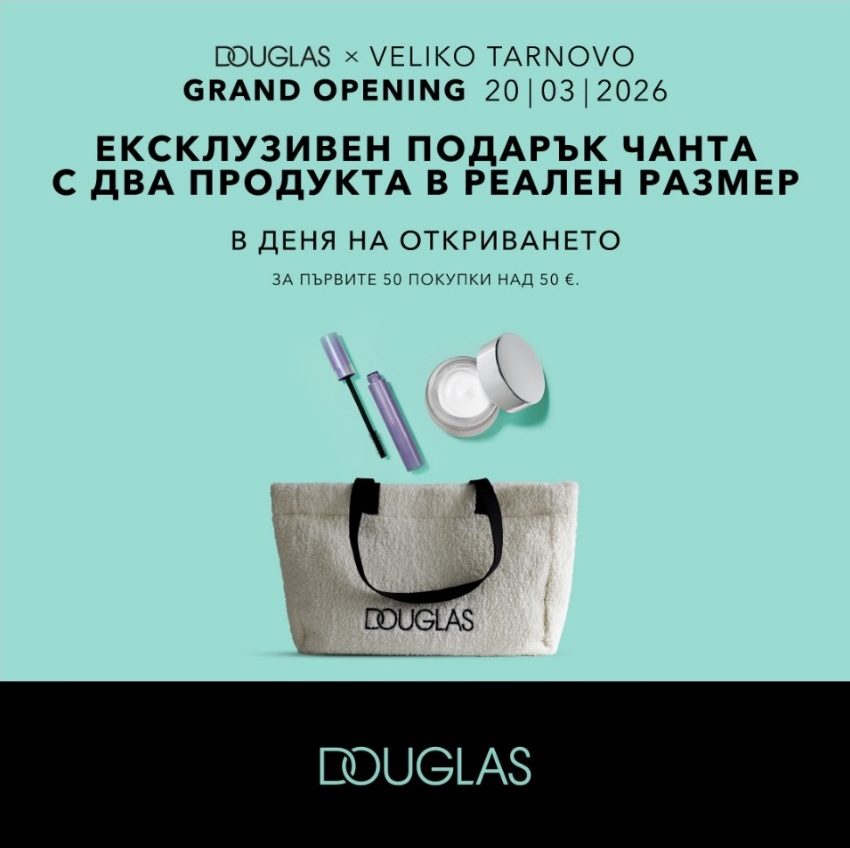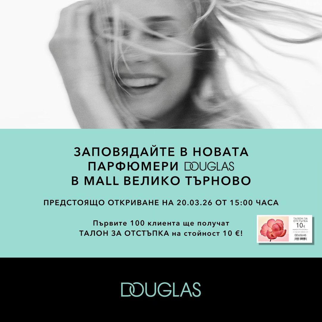 Откриването на Парфюмерия Douglas ще бъде на 20 март (петък) от 15 ч. на ниво 2 в Мол Велико Търново.