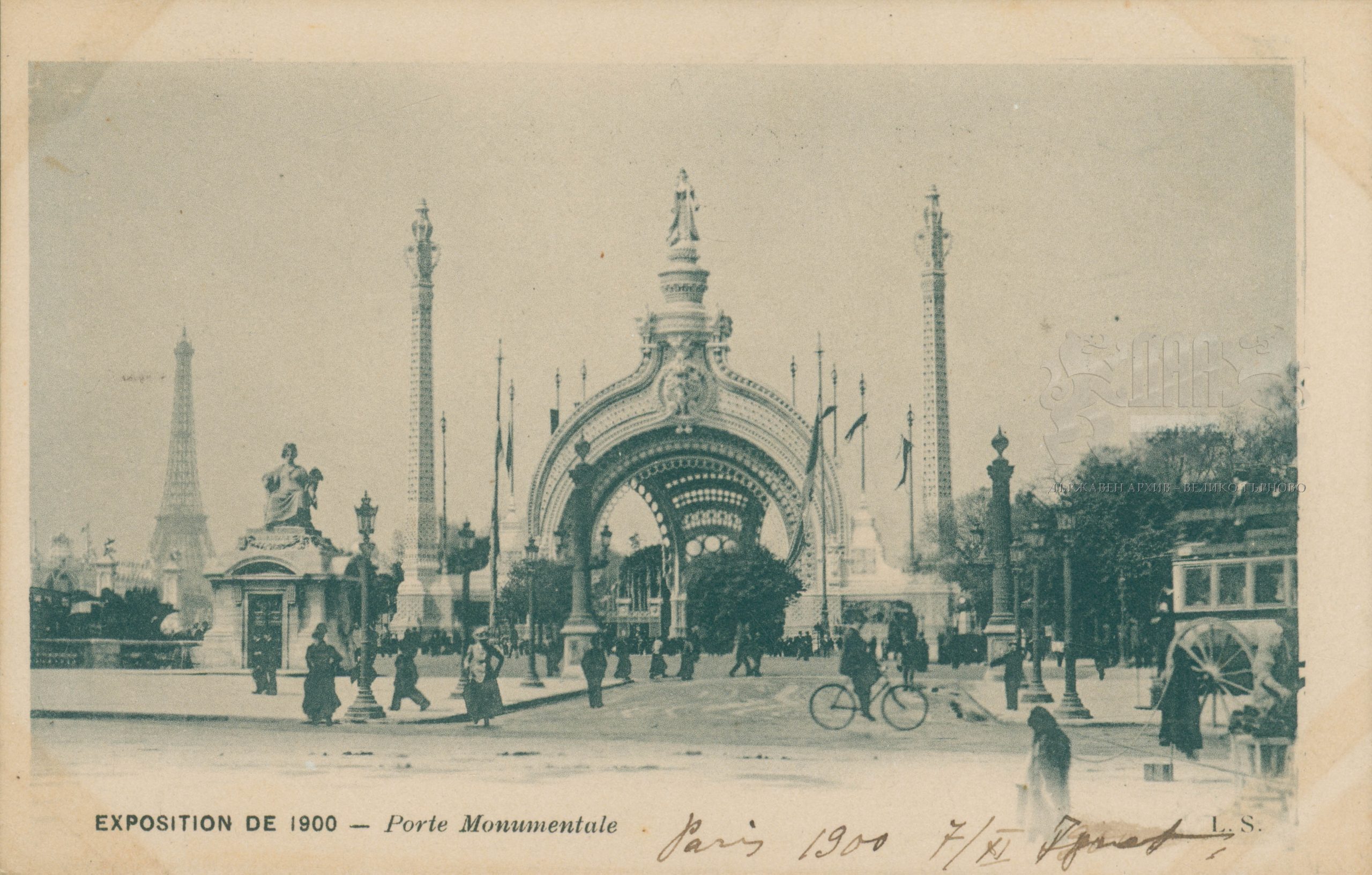| сн. 2 – Пощенска картичка с изображение на Монументалната порта и „Парижанката“, Париж 1900 г. |
