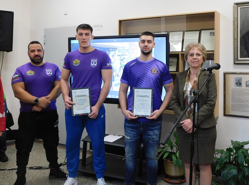 Подобаващо посрещане направи ПГТ „Д-р Васил Берон“ на своя възпитаник Вилизар Михайлов, който стана световен шампион по канадска борба. Дванадесетокласникът спечели три световни титли на първенството в Баку (Азербайджан), като първо триумфира на лява и дясна ръка при юношите, а после в категория 105 кг и при мъжете. На крачка от медалите остана Ивайло Арнаудов, който е от същото училище, а с тях бе и техният треньор и мотиватор от Армрестлинг клуб „Етър“ Петър Роглев, който пък стана двукратен световен вицешампион.
