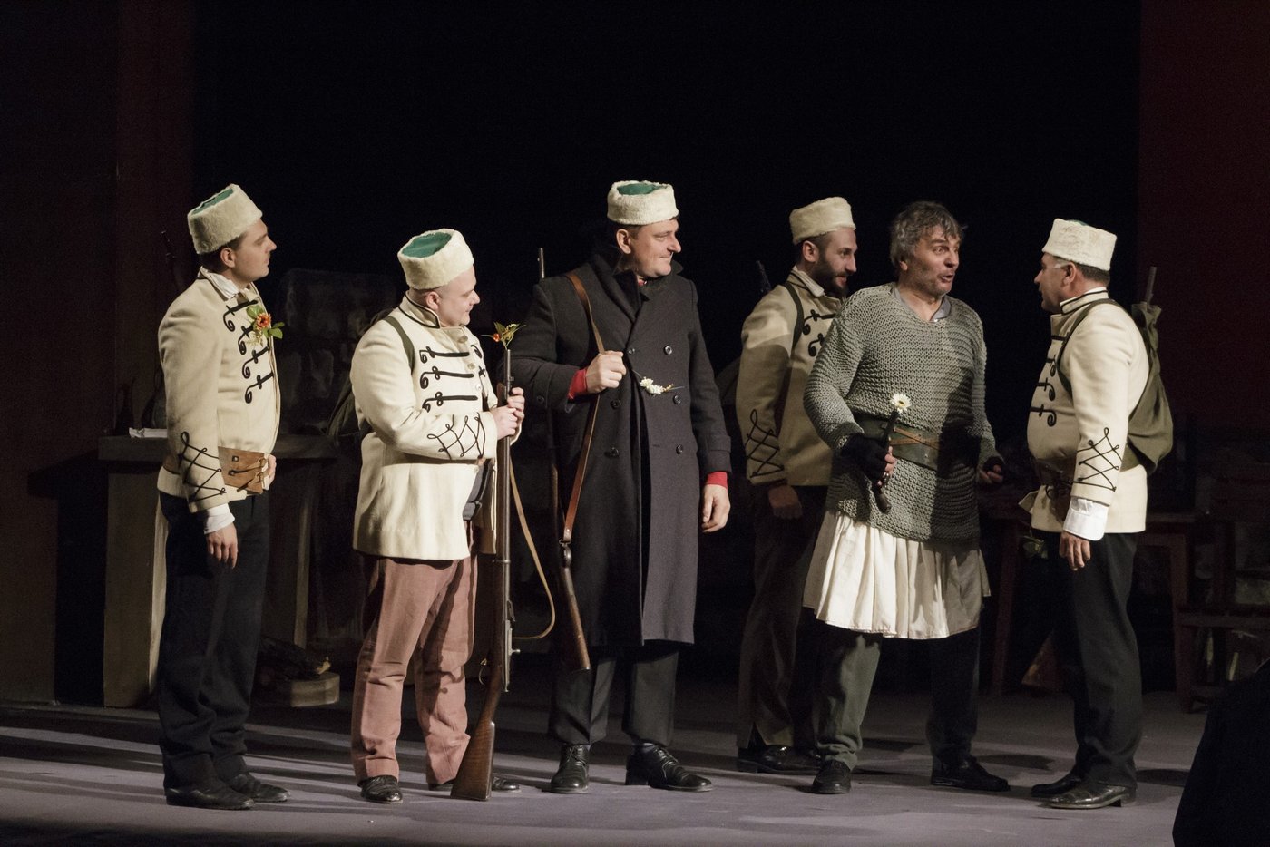 Главните герои от Иван-Вазовата драма пресъздават още Детелин Кандев /Македонски/, Милен Иванов /Владиков/, Виктор Терзийски /Хаджията/, Дончо Дончев /Попчето/, Георги Тодоров /Дерибеят/, Стефан Методиев /Добревич/, Стефка Петрова /Г-жа Добревич/, Стефка Златкова /Евгения/. В спектакъла своя дебют на търновска сцена ще направят Стоян Борисов в ролята на Бръчков и Дария Йорданова като слугинчето Катинка.