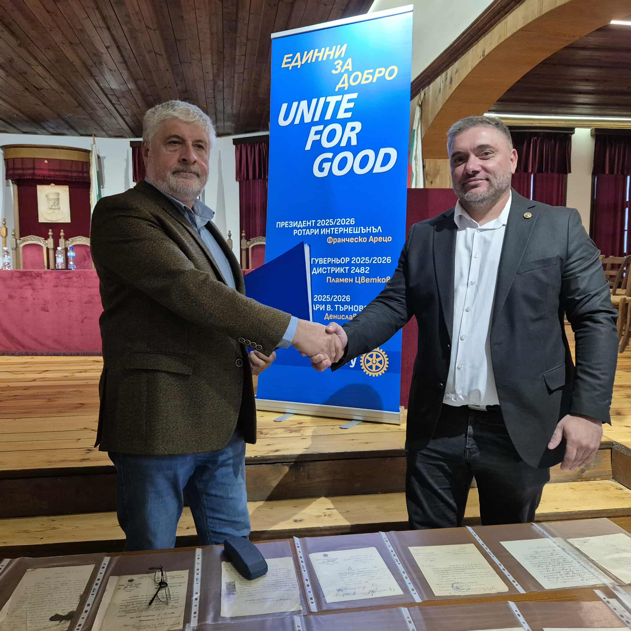 Ротари клуб – Велико Търново реализира поредната си добротворческа инициатива. Снощи в залата на музей „Възраждане и Учредително събрание“ се проведе съвместна сбирка на Ротари клуб и Ротаракт клуб, на която ротарианците официално връчиха на директора на Регионалния исторически музей д-р Иван Църов изключително ценни документи, свързани с бележития търновец Моско Москов.