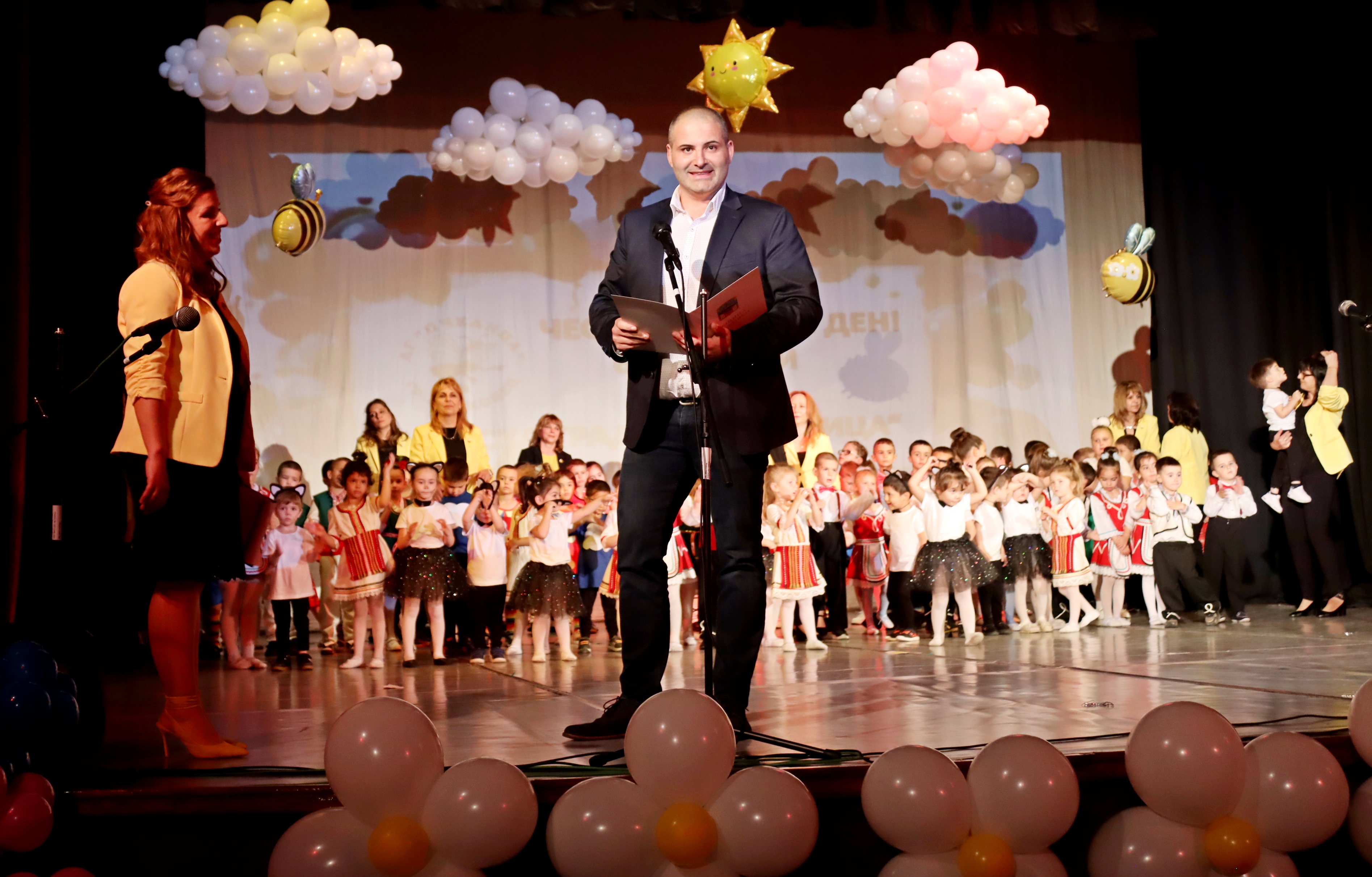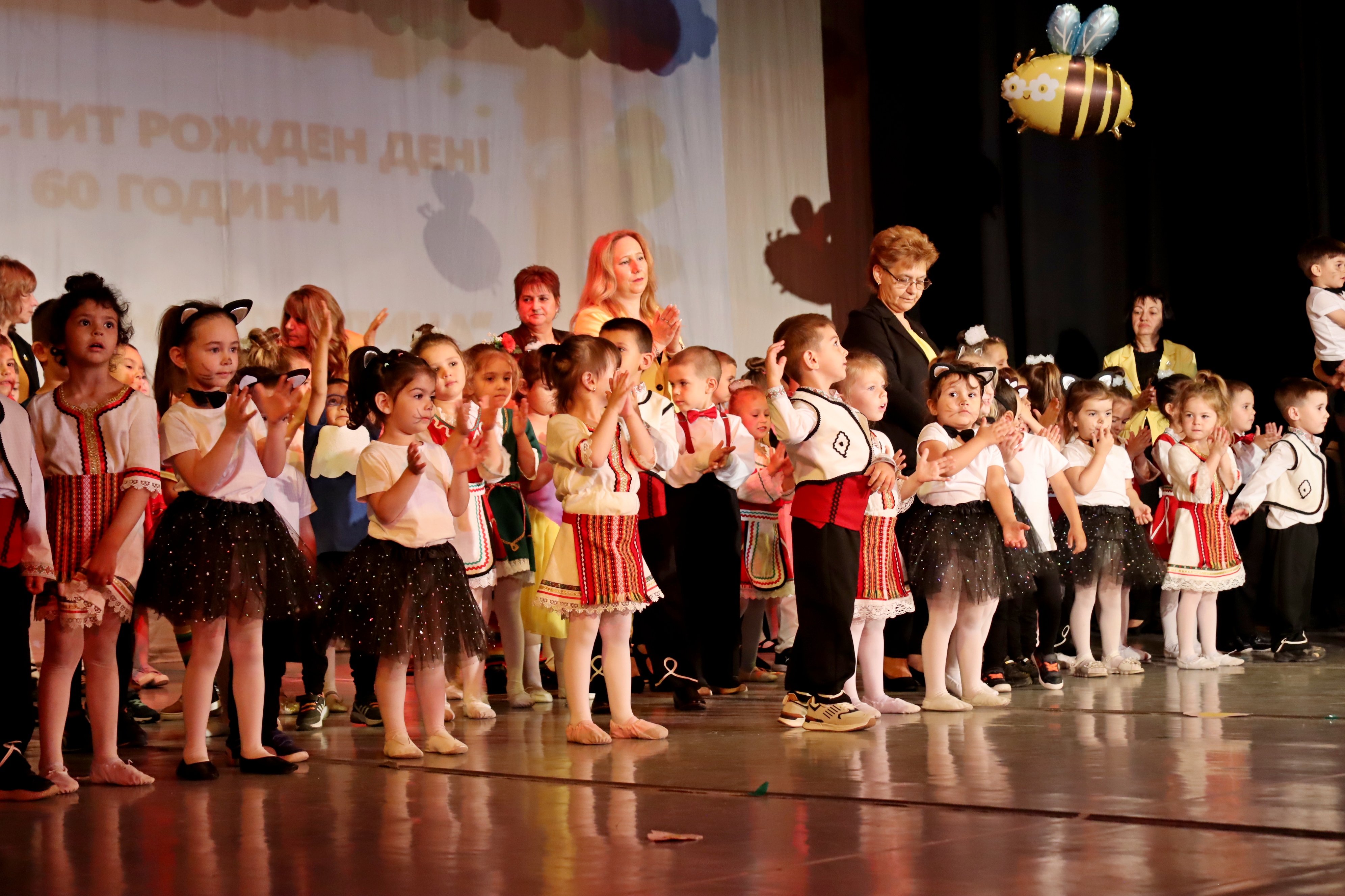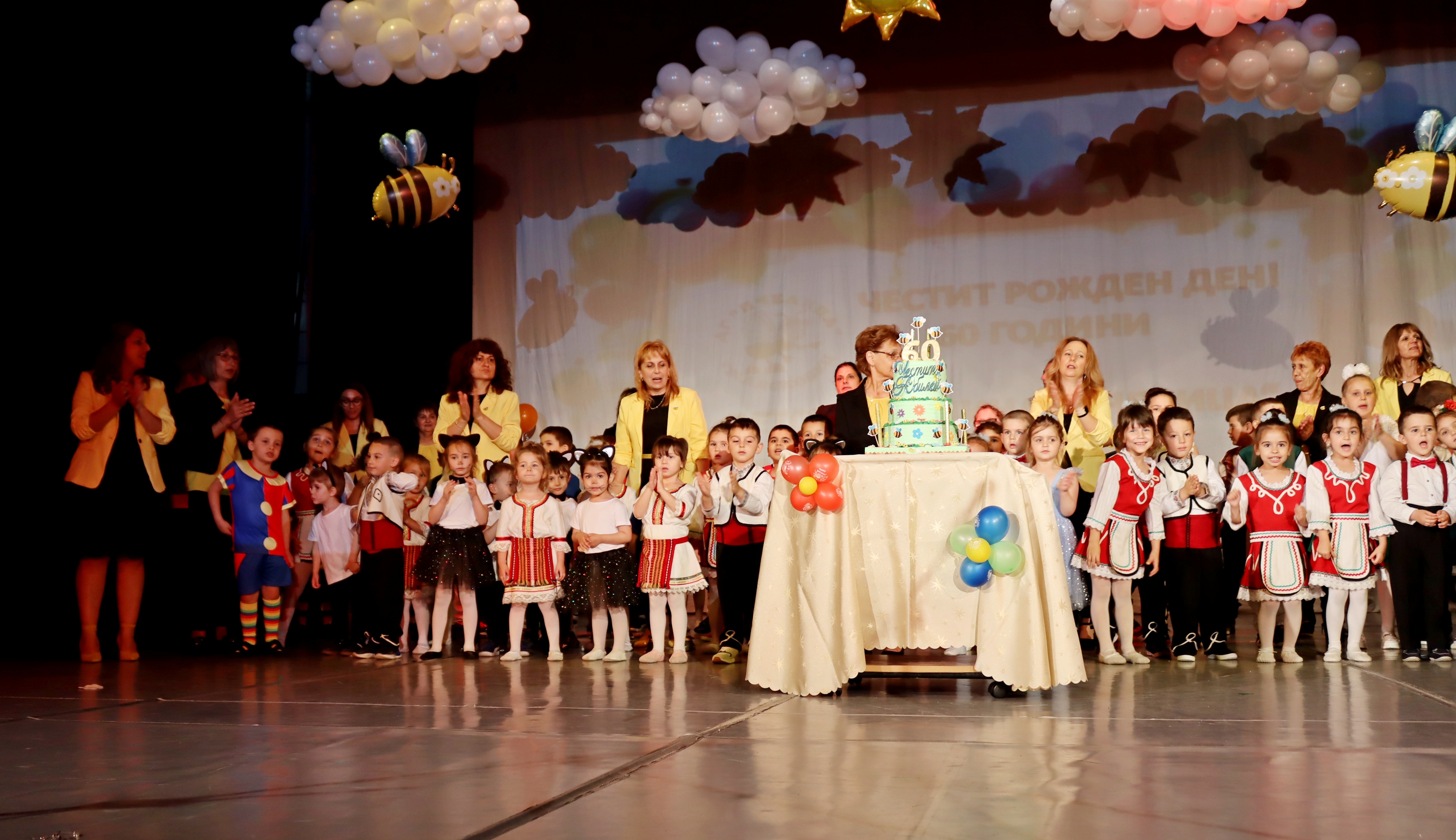 За своя празник и дългата подготовка за големия юбилеен концерт, децата получиха бурните аплодисменти на публиката. Два часа продължи спектакълът им, в който всички присъстващи в читалищната зала се насладиха на детските песни, танци, стихове, изпълнени от талантливите малки пчелички с ентусиазъм и артистичност. В програмата си децата изиграха „Котешки танц“, танците „Пролетна магия“, „Дъждовни капки“, „Вода“, „Весели клоуни“, „Каубойски танц“, балетните хореографии „Веселите патета“, „Цветна градина“, „Рожден ден“, както и народни танци – „Изгряла е месечинка“, „Ръченица“ и др. Децата бяха поздравени по време на концерта и от порасналите пчелички – бивши възпитаници на тяхната детска градина, сега големи ученици в НУ „Цани Гинчев“ и СУ „Максим Райкович“. Спектакълът на децата приключи със стихове за детството и с прочувствено слово и благодарности на директора към всички, които дават своята обич, доверие, подкрепа в работата на екипа и децата.